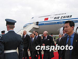 當(dāng)?shù)貢r間9日上午10時50分,國務(wù)院總理溫家寶乘專機(jī)抵達(dá)倫敦希思羅機(jī)場,開始對英國進(jìn)行為期三天的正式訪問。