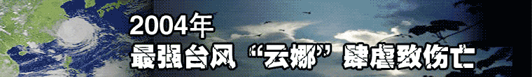 二○○四年第十四號臺風(fēng)“云娜”于八月十二日晚間八時許在浙江臺州溫嶺石塘鎮(zhèn)登陸。這是這一年以來四個在中國沿海登陸的熱帶風(fēng)暴中強度最強的一個,也是自一九九七年以來對浙江影響最嚴重的臺風(fēng)。截至登陸當(dāng)晚二