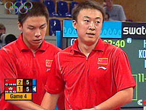 中新網(wǎng)8月21日電 在北京時間21日晚19:00開始的第28屆奧運(yùn)會乒乓球男子雙打決賽中,中國選手馬琳/陳玘以總比分4:2戰(zhàn)勝中國香港的高禮澤/李靜,為中國代表團(tuán)奪得了一枚金牌。