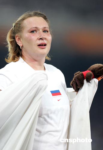 當(dāng)?shù)貢r(shí)間八月二十一日晚,在雅典奧運(yùn)女子鐵餅比賽中,俄羅斯名將薩多娃第五投擲出了六十七米零二的成績(jī),不但摘走金牌,也擊碎了希臘人科列西多的奪冠夢(mèng)想。中新社記者:毛建軍