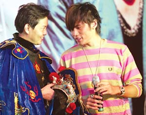 慶功會以京劇《大鬧天宮》開場,各路天王把周杰倫簇擁在中央,隱喻“唯周杰倫獨尊”。隨后,川劇大師彭登懷的弟子上臺伴著《我的地盤》表演了變臉。站在臺側的周杰倫目不轉睛地盯著表演者,然后走到表演者身邊左看右看,最后干脆動手搜起身來。聽到觀眾的笑聲,周杰倫很不好意思地說:“等回家再把老師扒光了查!