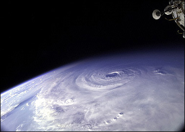 據(jù)法新社報(bào)道,颶風(fēng)“伊萬”即將登陸美國東南部沿海。當(dāng)?shù)卣φf服上百萬居民盡快疏散至安全地帶。圖為美國宇航員從距離地面230公里的國際空間站上俯視“伊萬”颶風(fēng)。(固山)
