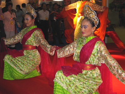 古銅色的皮膚,艷麗的民族服飾,激揚(yáng)的音樂(lè),來(lái)自馬來(lái)西亞的姑娘小伙子們跳起了具有濃郁馬來(lái)西亞特色的舞蹈。乍一看,還以為是東南亞民族風(fēng)情表演。仔細(xì)一打量才發(fā)現(xiàn)是馬六甲州情況說(shuō)明及經(jīng)貿(mào)旅游洽談會(huì)專(zhuān)場(chǎng)活動(dòng)。