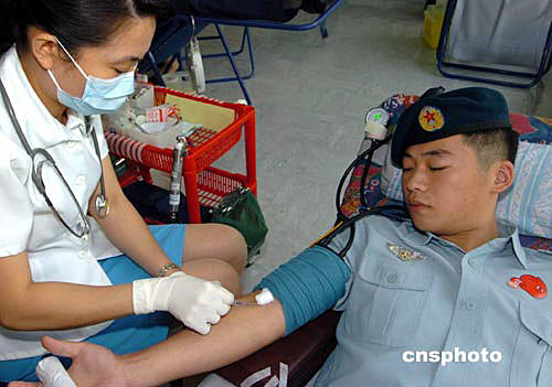 中新網9月24日電 解放軍駐港部隊四百官兵今天在駐軍醫(yī)院,參加由香港紅十字會組織的無償獻血活動。他們每人獻出四百五十毫升血液。這是駐港部隊自一九九八年以來,第七次參加無償獻血活動。