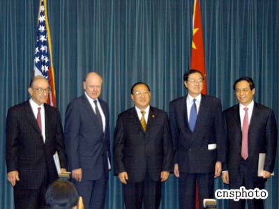 中美經(jīng)濟(jì)聯(lián)委會(huì)第十六屆會(huì)議當(dāng)天在此間召開。中國財(cái)政部長金人慶與美國財(cái)長斯諾共同主持了會(huì)議。中國人民銀行行長周小川、中國銀監(jiān)會(huì)主席劉明康、美聯(lián)儲主席格林斯潘、美國財(cái)政部副部長泰勒等財(cái)金高官出席了會(huì)議。