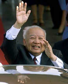 1970年3月18日,朗諾—施里瑪達(dá)集團(tuán)發(fā)動(dòng)軍事政變,西哈努克親王于當(dāng)月23日在北京宣布成立柬埔寨民族統(tǒng)一陣線并就任該陣線主席,領(lǐng)導(dǎo)民族解放斗爭(zhēng)。1974年4月17日,民族統(tǒng)一陣線在柬埔寨取得全面勝利后,就任民主柬埔寨國(guó)家主席。1976年4月辭去國(guó)家主席職務(wù)。1981年3月成立爭(zhēng)取柬埔寨獨(dú)立、中立、和平與合作民族團(tuán)結(jié)陣線,任主席至1989年8月。1982年7月9日出任民主柬埔寨主席并成為柬埔寨民族抵抗運(yùn)動(dòng)的領(lǐng)袖。1991年7月16日宣布辭去上述職務(wù),7月17日被推舉為柬埔寨全國(guó)最高委員會(huì)主席。同年10月23日率柬埔寨全國(guó)最高委員會(huì)全體成員出席巴黎會(huì)議,參加簽署“關(guān)于全面政治解決柬埔寨沖突的協(xié)定”。11月14日勝利返回金邊,被柬埔寨各方一致?lián)泶鳛閲?guó)家元首。1993年6月14日柬制憲會(huì)議通過(guò)決議,完全恢復(fù)西哈努克親王在1970年3月18日違憲政變前的一切權(quán)利和地位,并授其國(guó)家元首的所有權(quán)力。同年9月24日柬埔寨頒布新憲法,恢復(fù)君主立憲制。同日,王位委員會(huì)一致選舉西哈努克為國(guó)王、終身國(guó)家元首。