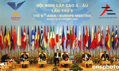 中新社河內(nèi)十月八日電(記者吳慶才)第五屆亞歐首腦會議今天上午在越南首都河內(nèi)舉行隆重的開幕式。此次為期兩天的會議是該組織正式接納十三個成員國之后,成為包括新成員在內(nèi)的亞歐三十九方的首次聚會,也是迄今為止參加方最多的一次會議。
