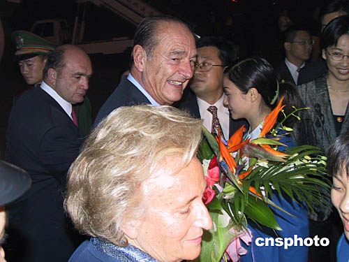 8日晚上,法國總統雅克·希拉克一行300多人乘坐的5架專機抵達成都。