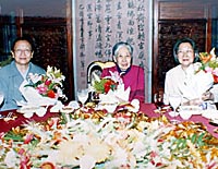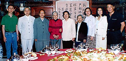 偉人們?yōu)榱耸聵I(yè),付出畢生的一切,并沒有給親屬后人留下什么物質(zhì)財富,甚至連所有家庭都應有的溫情回憶,也極其有限。歷史就是歷史,無法改變,更不能抹去;當事者的回顧總是帶著濃重的個人色彩和不可避免的片面性;旁觀者的記憶更隨著境遇變遷因人而易。眼前,這一切已是“而今邁步從頭越”。三代人的歡宴進行了兩個多小時,錄像機攝下了充滿歡聲笑語的一幕幕場景。媽媽和姨媽興趣盎然,偶爾交頭議論,不時插上幾句,始終滿意地笑著。銀絲皓首的光美奶奶沒有怎么講話,慈祥而超然地看著孩子們,孱弱清癯的面龐上泛起紅暈,顯得那么幸福,那么美麗!