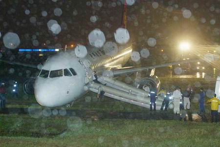 中新社臺(tái)北十月十九日電 (記者 張明新)臺(tái)灣復(fù)興航空一架由臺(tái)南飛往臺(tái)北的飛機(jī)昨天晚上在松山機(jī)場(chǎng)降落時(shí),不慎滑出跑道,到目前為止,機(jī)場(chǎng)還未重開。
