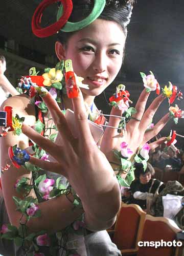 十月二十日,中國國際美容時尚周美甲冠軍大賽在北京展覽館劇場舉行,造型獨特的立體美甲令人眼花繚亂。作者:廖文靜