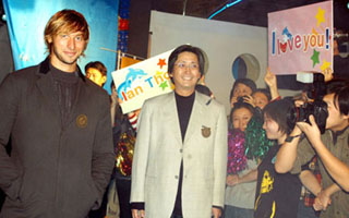 據(jù)主辦方介紹,9月以來,索普為Sony產(chǎn)品拍攝的電視廣告和平面廣告在上海、北京、廣州火熱播映。索普此次應(yīng)索尼公司的邀請(qǐng)來到中國(guó),將作為Sony產(chǎn)品代言人參加一系列活動(dòng)。雖然索普并非第一次來華,而且許多媒體和Fans已經(jīng)有一定的心理準(zhǔn)備,但是當(dāng)索普亮相的瞬間,還是引來陣陣尖叫和騷動(dòng),成為名副其實(shí)的“菲林殺手”。