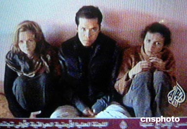 10月31日,半島電視臺播出了有關(guān)聯(lián)合國人質(zhì)近況的錄像。從抓拍的畫面中可以看到3名被“穆斯林軍”綁架的聯(lián)合國人質(zhì)。綁匪定下了3天的期限,讓外國軍隊(duì)和聯(lián)合國機(jī)構(gòu)撤離阿富汗,否則就殺了這些人質(zhì)。