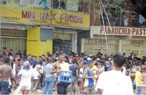 中午11時,又有一群不明真相的暴徒來到一家名為“MINIMAXFOODS”的吳姓華人超市門前,用利器挖了墻壁一個大洞,并用利器破門而入。正當?shù)群騼膳缘娜巳悍溆慷脒M行哄搶之際,剛巧軍警人員及時趕到,驅散了人群。當天下午1時許,這家商店再度被洗劫一空。