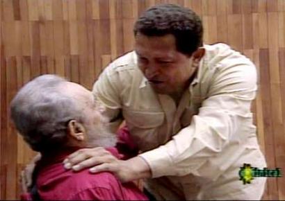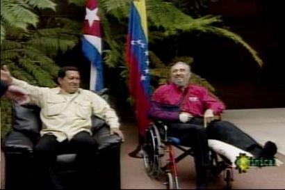 報道稱,卡斯特羅與查韋斯在上星期六晚上舉行了長達八個小時的會談——這對于一個已經(jīng)78歲高齡的老人來說非常不易,考慮到他還剛剛摔了一跤,就更有點難能可貴了。電視臺的畫面顯示,卡斯特羅坐在輪椅上,腿打了石膏,胳膊也用吊帶吊在脖子上。此前,卡斯特羅在不慎摔倒后只在電視上出現(xiàn)過一次。當(dāng)時電視臺只播出他胸部以上部分的鏡頭。