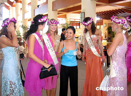 前來三亞參加第54屆世界小姐總決賽的澳大利亞小姐楚楚動(dòng)人,落落大方。