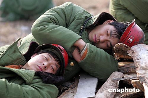 下午五點(diǎn)左右,在副礦口外,一群人正緊急待命,準(zhǔn)備下井搜救被困人員。他們有的是這個(gè)礦區(qū)的工人,有的是裝備齊全的救護(hù)小隊(duì)。那些工人手持幫助呼吸的自救器,下去是要搜救位于礦區(qū)淺層的被困人員,這些地段相對(duì)安全,而救護(hù)小隊(duì)的隊(duì)員目標(biāo)是礦區(qū)深層中的被困人員。記者目送著他們慢慢消失在了迷茫的空氣中,問(wèn)旁邊人他們什么時(shí)候可以上來(lái),沒(méi)有得到準(zhǔn)確答案。