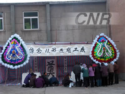 中廣網(wǎng)消息,今天是礦難發(fā)生的第七天,陳家山陽光明媚,但所有陳家山礦難現(xiàn)場的人們心情都十分沉痛。按照當(dāng)?shù)孛耖g的習(xí)慣,是給亡者過“頭七”的日子。為了方便遇難礦工家屬的祭奠,有關(guān)方面專門在陳家山礦浴池前廣場搭建了靈堂。從上午7點(diǎn)開始,遇難礦工家屬就陸續(xù)來到靈堂祭奠,現(xiàn)場一片肅穆。
