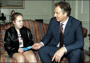中新網(wǎng)12月8日電 英國《太陽報(bào)》報(bào)道,7日,英國首相布萊爾會(huì)見了12歲小姑娘比安卡·鮑威爾,對(duì)她與壞人進(jìn)行頑強(qiáng)抗?fàn)幍木窠o予了充分肯定。