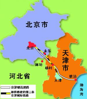 該線路規(guī)劃由北京南站東端引出,沿京津塘高速公路,經(jīng)永樂、楊村至天津站。京津城際軌道交通采用較快的速度標(biāo)準(zhǔn),車站設(shè)置盡可能覆蓋沿線主要城鎮(zhèn),既要實(shí)現(xiàn)快速度、公交化、大容量運(yùn)輸,又要充分滿足沿線各主要城鎮(zhèn)間日益頻繁的客流需求。項(xiàng)目建成后,可加速京津地區(qū)一體化進(jìn)程,促進(jìn)環(huán)渤海地區(qū)經(jīng)濟(jì)快速協(xié)調(diào)發(fā)展,并為北京舉辦奧運(yùn)會(huì)提供良好的運(yùn)輸條件。