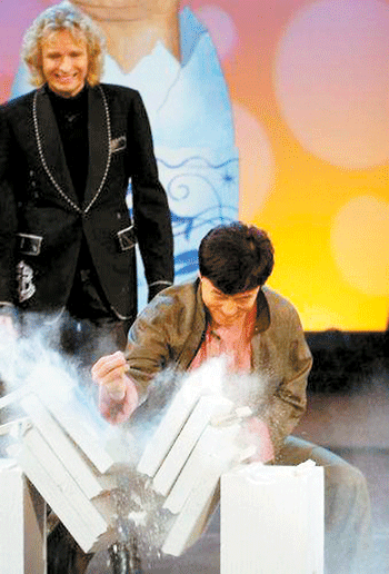 此外,他還與著名網(wǎng)球選手費(fèi)得勒一起亮相德國電視節(jié)目《Bet, it?》,在節(jié)目進(jìn)行中,成龍即興作驚險(xiǎn)表演,用單臂擊碎大石,引來觀眾一片驚嘆。(阿湯)