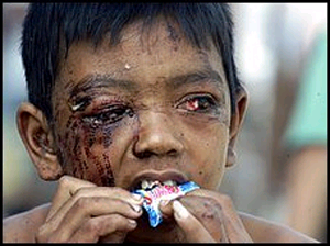 在一個個受災(zāi)國家,兒童成了這次地震引發(fā)的海嘯的最大受害者,排山倒海的巨浪卷走和淹死了成千上萬的兒童,野蠻地奪去了幾乎整個一代亞洲人的生命。