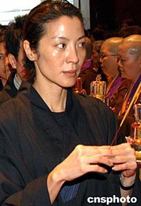 影視紅星楊紫瓊在香港舉行的佛指舍利圓滿傳供暨圓滿閉幕典禮上,虔誠(chéng)祈福。作者:錢(qián)興強(qiáng)