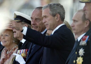 諾曼底登陸60周年紀念儀式6日下午在法國小城阿羅芒什隆重舉行。包括德國總理施羅德和俄羅斯總統(tǒng)普京在內(nèi)的20多位國家元首參加紀念儀式。德國和俄羅斯的領(lǐng)導(dǎo)人今年是首次參加諾曼底登陸紀念。