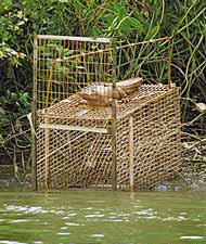 香港漁護署四月中推出捕獸籠“新增改良版”,在籠頂加設(shè)更多機關(guān),頑鱷若再爬上籠頂,手腳或尾巴隨時套進“索箍”動彈不得,便會束手就擒。