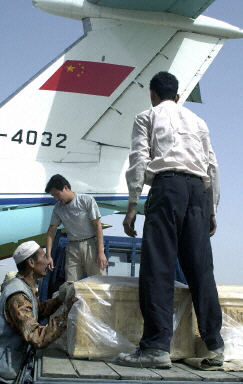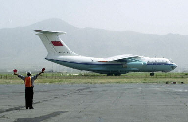 中國人民解放軍空軍運送中國11名遇害工人遺體的軍用專機6月14日抵達(dá)阿富汗首都的喀布爾國際機場。