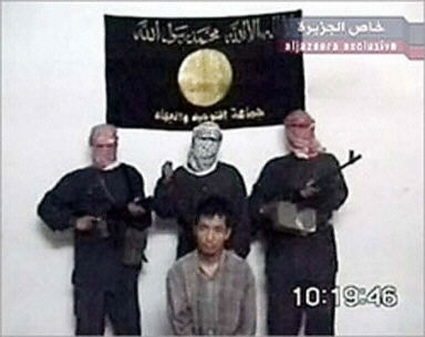 這些宣稱是來自約旦抵抗團(tuán)體阿布·穆薩卜·扎卡維所屬集團(tuán)的劫持者們表示,如果在24小時(shí)內(nèi)不接受從伊拉克撤軍的要求,則將把被確認(rèn)為金善日(音譯)的韓國人的人頭送到韓國。