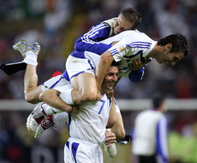 希臘隊則創(chuàng)造了首次進(jìn)軍國際大賽四強的最好成績,成為本屆比賽最大的“黑馬”。他們先后擊敗葡萄牙、法國,戰(zhàn)平西班牙,闖入四強讓人心服口服。在半決賽中,他們將對陣捷克隊和丹麥隊比賽的勝者。
