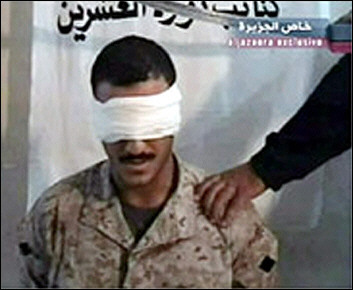 就在這份錄像被播放之前,半島電視臺還播放了另一份來自伊拉克身份不明的槍手的錄像帶,內(nèi)容是威脅要砍掉一名巴基斯坦人質(zhì)的頭,除非美軍釋放伊拉克囚犯。