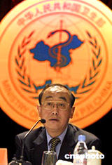 中國(guó)國(guó)務(wù)院副總理吳儀七月一日在衛(wèi)生部會(huì)議上講話。此次會(huì)議證實(shí),今年中國(guó)非典疫情的發(fā)生,源于實(shí)驗(yàn)室感染,相關(guān)責(zé)任人受到處理。中新社記者:宋吉河
