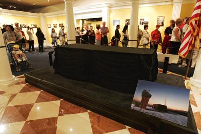 展覽展出了里根葬禮過程中所用過的物品和畫像,其中包括幾十張巨幅照片、放置有里根骨灰盒的棺材、以及6月5日在“里根”號航母上飄揚的旗幟等。同時,參觀者還有幸觀看葬禮的錄像。