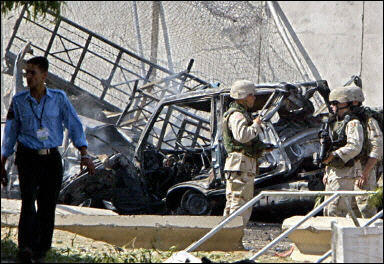 據(jù)警方稱(chēng),當(dāng)天上午9點(diǎn)20分左右,一輛裝有450公斤炸藥的汽車(chē)在“綠區(qū)”中的伊新政府辦公樓正門(mén)前的隔離欄邊爆炸。劇烈的爆炸除了造成大量人員傷亡外,還破壞了附近的多座建筑,濃煙也在“綠區(qū)”上空升起。