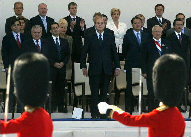在主席臺(tái)上就座的,除了法國(guó)總統(tǒng)希拉克和法國(guó)政府要員外,還有特邀嘉賓英國(guó)國(guó)防部長(zhǎng)胡恩及英軍參謀部各高官。