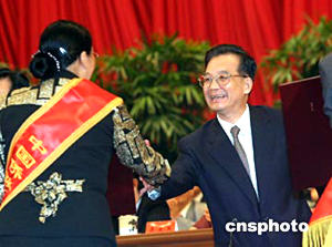 胡錦濤等黨和國(guó)家領(lǐng)導(dǎo)人為受表彰的先進(jìn)集體和先進(jìn)個(gè)人的代表頒發(fā)了榮譽(yù)證書和獎(jiǎng)牌。