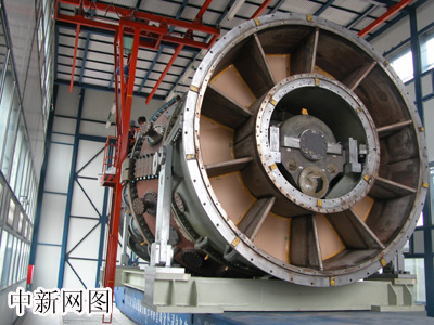 “網(wǎng)上河北行”采風團參觀訪問秦皇島經濟技術開發(fā)區(qū)中的哈爾濱動力設備股份有限公司,該公司展示了和美國GE公司組裝成功的中國第一臺大功率燃氣式發(fā)電機組,價值逾3億元人民幣。(秦欣攝)  中國第一臺大功率燃氣式發(fā)電機組,價值逾3億元人民幣。(劉鋼虎攝)