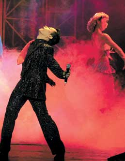 《永恒的張國榮》是從無盡的黑暗中開始的,然后有張國榮影像的巨大白色紗幔緩緩升起,張國榮從出道到他離世前的照片一幅幅出現(xiàn)在舞臺背景中。場燈亮了起來,由陳志朋扮演的張國榮唱著《今生今世》出現(xiàn)在舞臺上,他的造型完全模仿“哥哥”2000年熱情演唱會,一身白色羽毛,天使打扮。張國榮演出的真實影像在大屏幕上,《似水流年》、《紅》、《深情相擁》、《共同度過》、《由零開始》、《無心睡眠》、《愛慕》、《風繼續(xù)吹》等18首歌交替被陳志朋展現(xiàn)。有的觀眾說,“我們不在乎陳志朋演得怎么樣,最重要的是回憶‘哥哥’的人生和舞臺歲月,在我們心中根本沒有人能夠取代張國榮、扮演張國榮!”伴隨著這些歌曲,《永恒的張國榮》也講述了一個浪漫的愛情故事:女大學生去看張國榮的2000年熱情演唱會,演唱會后立刻成了張國榮的忠實歌迷,而且她更是在觀看演唱會的時候,認識了同為“哥哥”歌迷的導演。他們迅速地走到了一起,成為戀人。但沒想到的是,男孩兒在一次高原采風途中意外死去了……男女主演表演得都比較生澀,有些作秀的感覺,好在只是陪襯。(記者 郝曉楠)