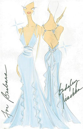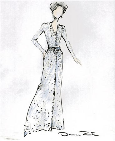 白宮提前公布了總統(tǒng)夫人與女兒當日出席布什就職典禮時所穿的禮服草圖。