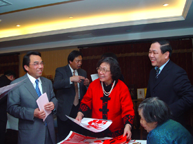 招待會(huì)上,來(lái)自京城百工坊的4位民間藝術(shù)家為來(lái)賓們現(xiàn)場(chǎng)制作了剪紙、泥人、面人和燙畫葫蘆,他們的精湛技藝和精彩表演體現(xiàn)了濃濃的中華特色和民族氣韻,引來(lái)客人陣陣喝彩。招待會(huì)自始至終洋溢著歡快友好的氣氛。