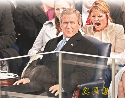 中新網(wǎng)1月22日電 美國(guó)總統(tǒng)布什雖然是周四就職禮的主人家,但他的孖女之一珍納卻靠一個(gè)呵欠出位,搶去父親不少風(fēng)頭。