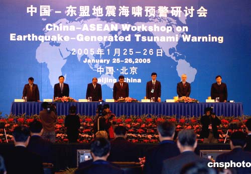 中新社北京一月二十五日電(記者孫自法)在印度洋地震海嘯發(fā)生整整一個(gè)月后的今天,中國(guó)-東盟地震海嘯預(yù)警研討會(huì)在北京飯店開幕。來(lái)自中國(guó)和東盟十國(guó)、東盟秘書處與聯(lián)合國(guó)相關(guān)機(jī)構(gòu)的專家和官員,以及印度、斯里蘭卡、美國(guó)、日本、韓國(guó)等國(guó)的觀察員代表近百人與會(huì)。