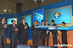 中國(guó)民航史上最大的一筆訂單二十八日在華盛頓簽訂,中國(guó)國(guó)航、東航、南航、海南航空、廈門航空、上海航空六家航空公司將進(jìn)口價(jià)值七十二億美元的六十架最新型波音787飛機(jī)。這批飛機(jī)將從二00八年開(kāi)始陸續(xù)交付使用。