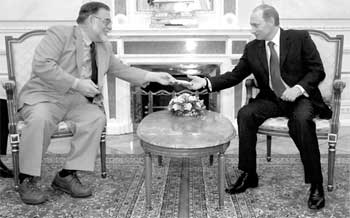 獲得如此贊譽的科波拉自然也懂得“禮尚往來”的道理,他微笑著贊美了普京總統(tǒng)在蘇聯(lián)軍隊解放奧斯威辛集中營60周年典禮上的講話。普京在這次講話中表示,他為俄羅斯現(xiàn)存的反猶主義感到“恥辱”!白吭降陌l(fā)言”,科波拉說,“但是你看上去比電視里更年輕。”作為從遙遠(yuǎn)國度帶來的珍貴禮物,科波拉還贈送給普京總統(tǒng)一張《迷失東京》的DVD。這部由他女兒索菲婭·科波拉執(zhí)導(dǎo)的都市情感片,在去年的奧斯卡頒獎典禮上獲得了最佳原著劇本的殊榮?撇ɡ湴恋叵蚱站┛偨y(tǒng)表示,他和他的女兒都是在32歲的時候拿到第一尊小金人(出生于1939年的科波拉,在1971年憑《教父》第一集獲得最佳改編劇本),普京總統(tǒng)機智地回應(yīng)道:“看來你的孫女必須也做到這一點了。”