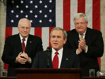 中新網(wǎng)2月3日電 美東時(shí)間2日晚9點(diǎn)左右,美國(guó)總統(tǒng)布什抵達(dá)國(guó)會(huì),發(fā)表國(guó)情咨文,并陳述其連任施政方針。
