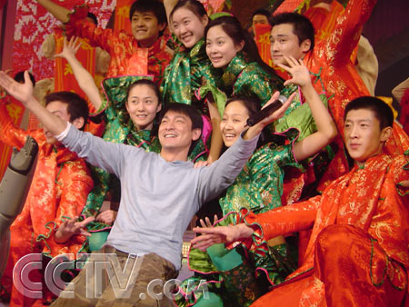 為了讓劉德華盡快熟悉現(xiàn)場(chǎng)表演情況,導(dǎo)演組首先讓前幾次彩排中一直擔(dān)任劉德華替身的舞蹈演員再次表演節(jié)目,在示范表演之后,劉德華手持麥克風(fēng)上場(chǎng),可能由于事先對(duì)節(jié)目有所準(zhǔn)備,劉德華臺(tái)上的表演、唱歌都很到位,與伴舞演員以及兩個(gè)可愛的機(jī)器人配合也非常默契,彩排一次成功。但為了實(shí)現(xiàn)更好的演出效果,在劉德華的要求下,又進(jìn)行了第二次彩排,之后劉德華及其工作人員迅速離開現(xiàn)場(chǎng)。(逯娜 高正奎)