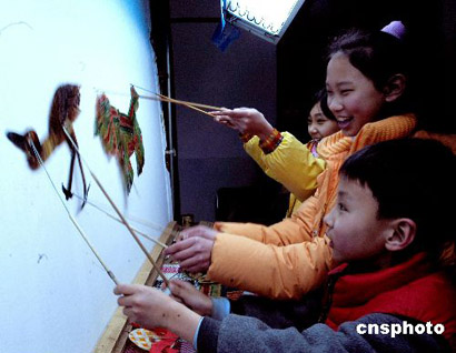 孩子們自編自演皮影戲歡樂度春節(jié)
