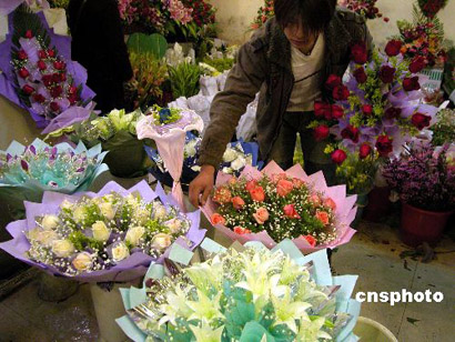 情人節(jié)前夕,錫城市場上的各種情人應(yīng)節(jié)禮品、紅色玫瑰等受到年青人的追捧。無錫一些商家推出的許愿墻上許心愿活動異;鸨瑢η閭H紛紛買來許愿牌、同心結(jié),寫上祝福貼在各種“心”形墻上,希望能將情意綿綿的情話捎給心愛的人。作者:潘正光
